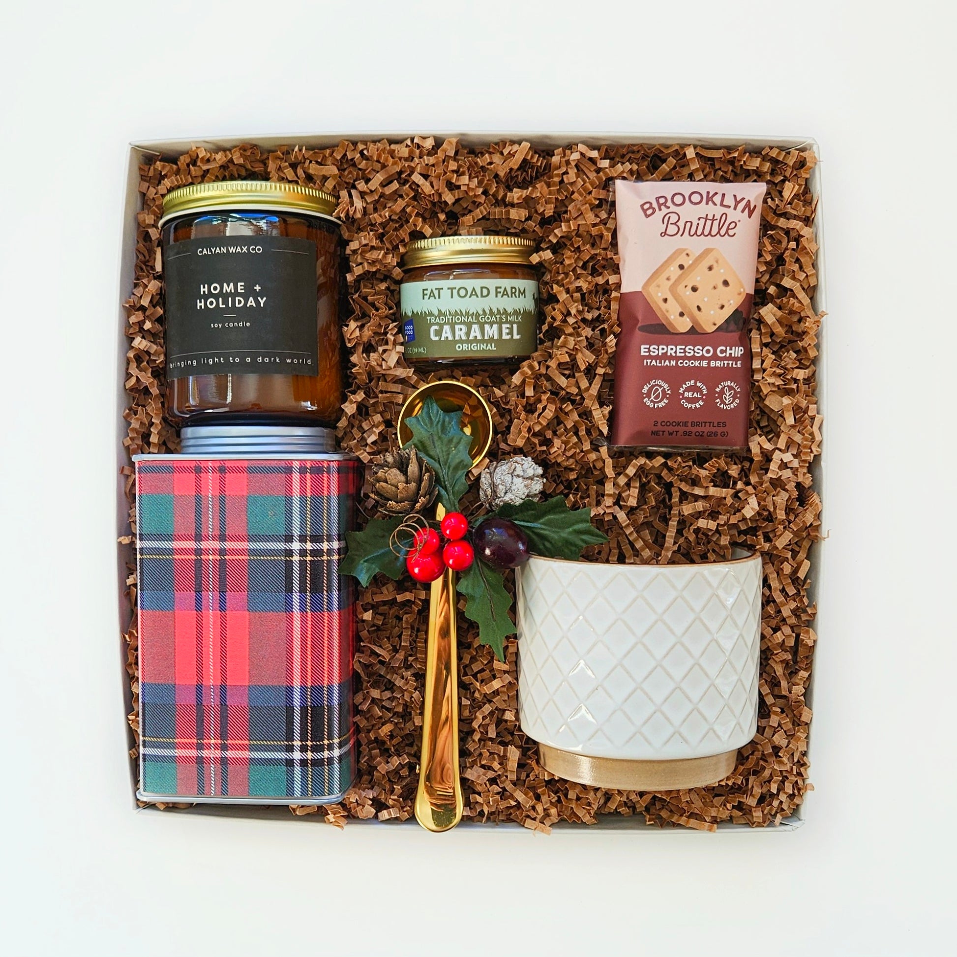 Each item is securely snuggled in our kraft crinkle paper, and packaged in our signature large keepsake box. Finished with a gold satin ribbon tied in a bow. Each gift comes with a customized handwritten note. Please add your message above. This gift ships within 1-3 business days.